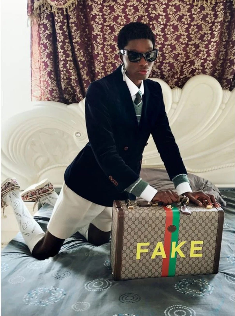 Campaign image from Gucci’s Fake Not collection from Fall/Winter 2020-21 by Alessandro Michele.